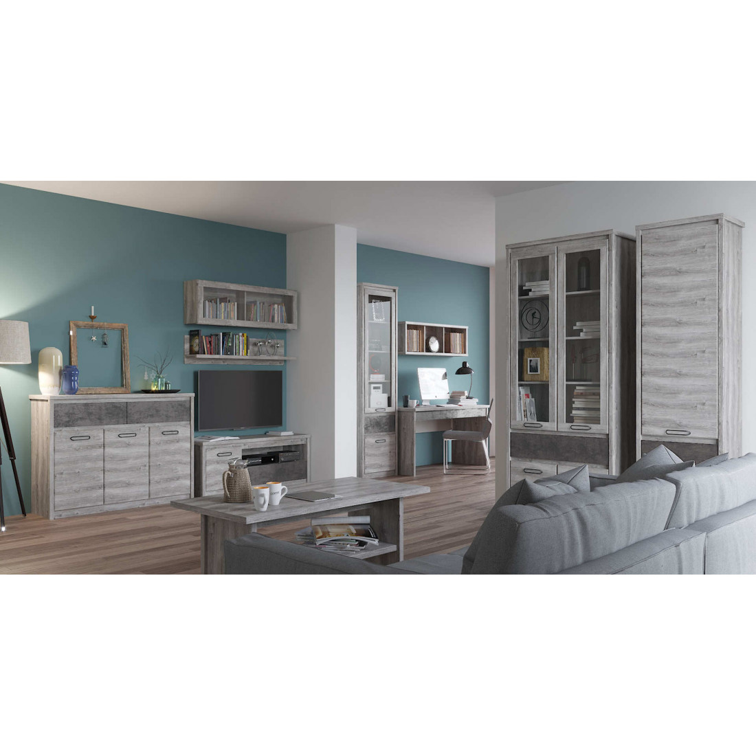 Гостиная Джаз выполнена в современном стиле. Отличительной особенностью этой коллекции является одновременное применение двух вариантов открывания двери: при помощи металлических ручек на одних фасадах и внутренней фрезеровки на других. Фасады выдвижных ящиков могут быть выполнены как в цвете оникс, так и в цвете каштан найроби. Эта мебель станет заслуженным украшением для любого интерьера.