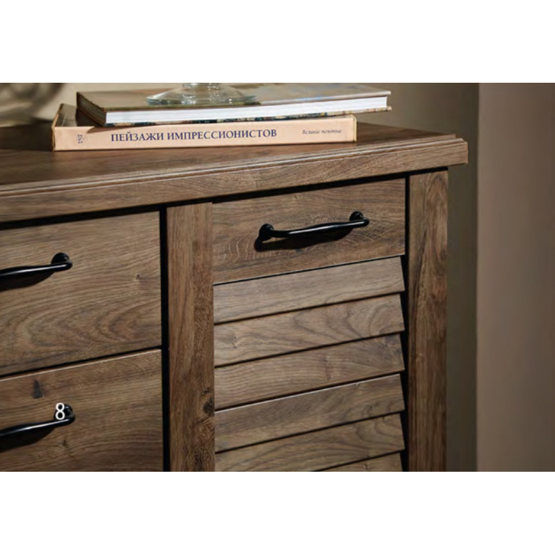Комод Кантри является представителем коллекции «Кантри». Романтичный и спокойный внешний вид каждого элемента колеккции поможет сделать ваше жилое пространство по-настоящему уютным и изысканным. «Кантри» - это несколько вариантов расцветки, уникальный дизайн, разнообразие модульной системы и отсылки к натуральным материалам.