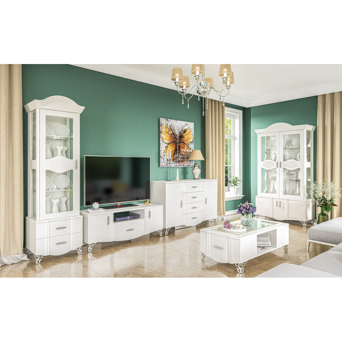 Шкаф-витрина в гостиную МН-025-21 серии София от фабрики Мебель-Неман выполнен в элегантном стиле с легким и притягательным оттенком античности. Остекление придает достаточно массивным и вместительным шкафам визуальную легкость. Изящный орнамент на декоративных элементах с инновационной 3D фрезеровкой повторяется в виде рисунка на карнизе.