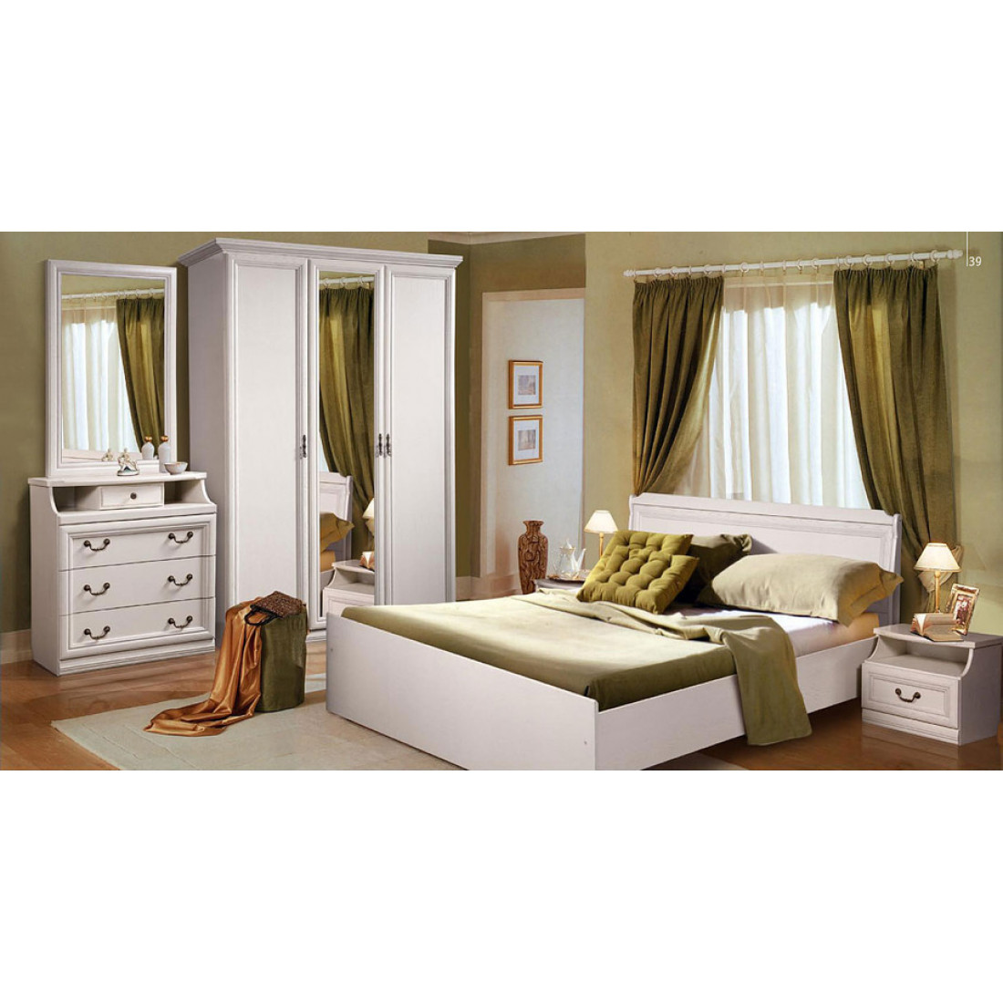 Отделка: варианты цвета «табак + темная патина», «белая эмаль», «белая эмаль + золотая патина», лак на водной основе.