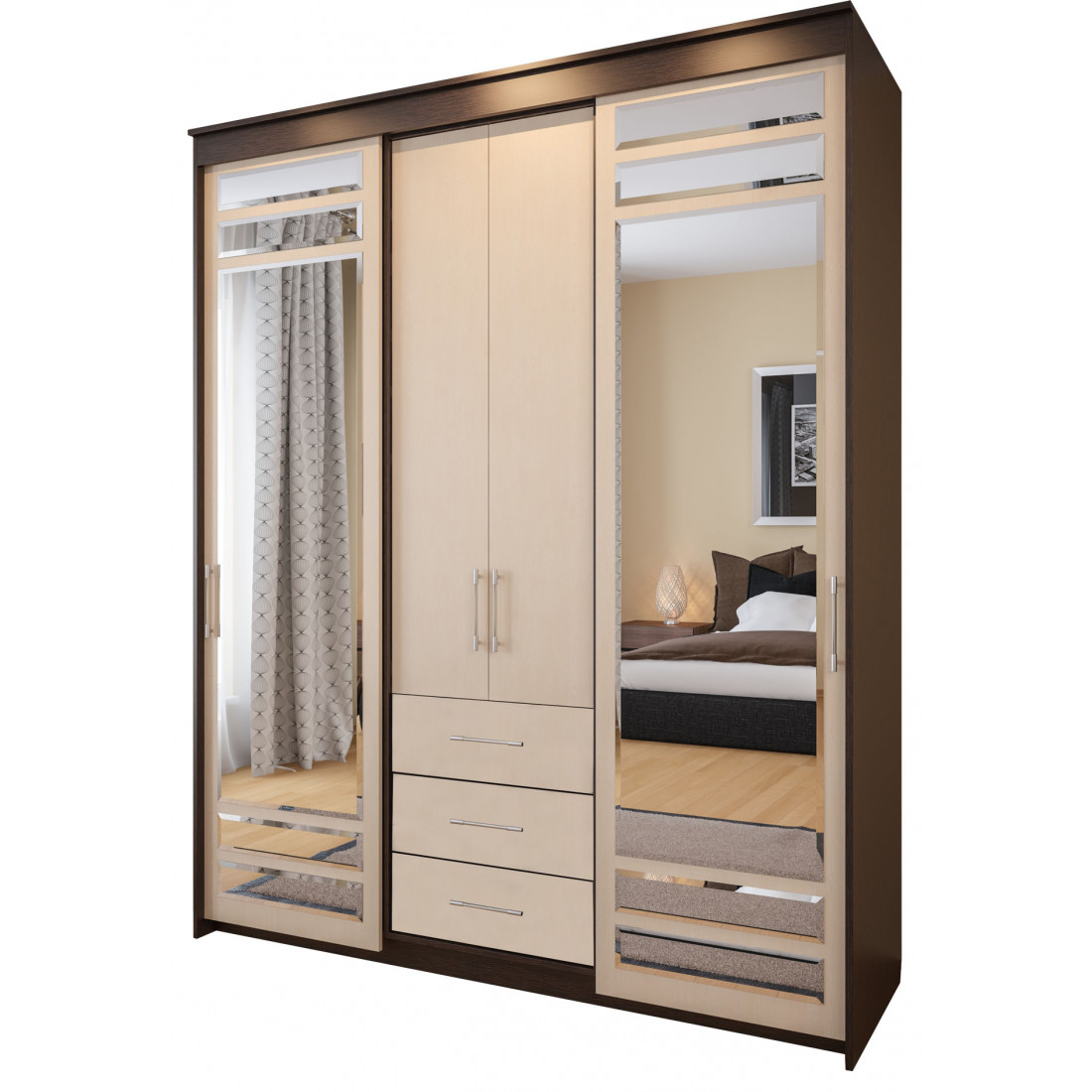 Хотите приобрети вместительный шкаф-купе, который сможет надежно хранить всю вашу одежду и обувь, при этом будем компактным и современным? Тогда обратите внимание на шкаф-купе ШК-05, который обладает всеми этими признаками. Он состоит из двух объемных отделений со штангами, в которых вашей одежде любой длины будет «удобно», нижних отделений для коробок с обувью, верхних полочек для головных уборов. Среднее отделение состоит из горизонтальных полочек и выдвижных ящиков. Оценить свой образ вы сможете в двух вертикальных зеркалах. Шкаф-купе ШК-05 может быть выполнен в трех модных цветовых решениях.